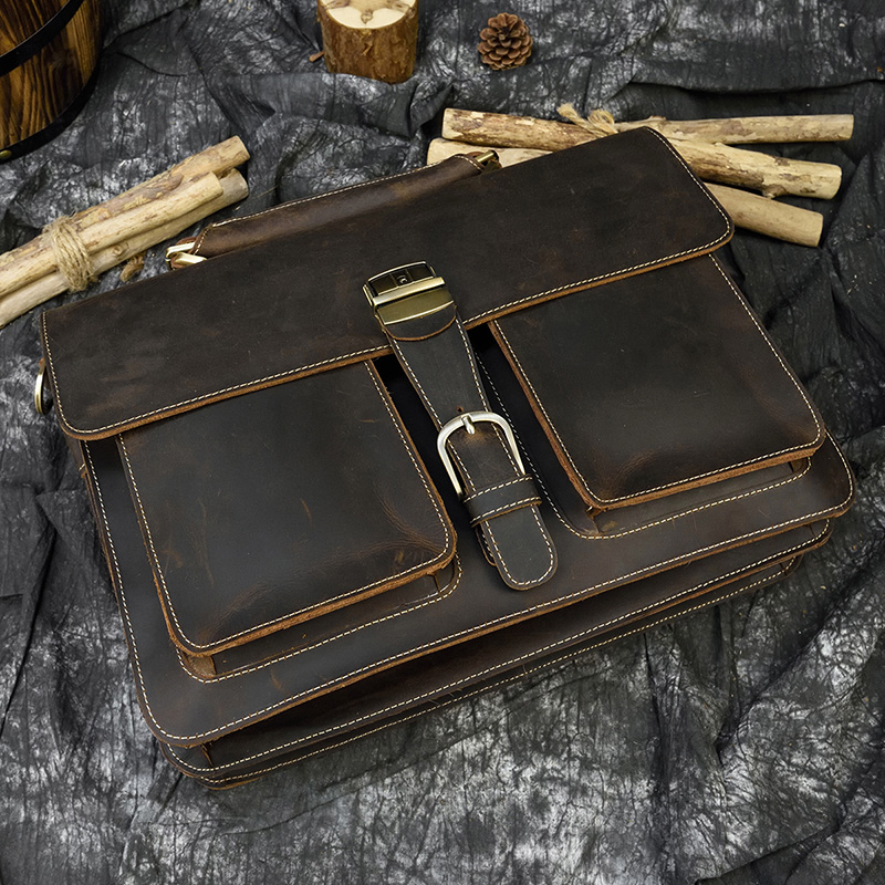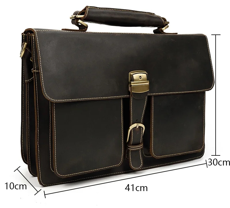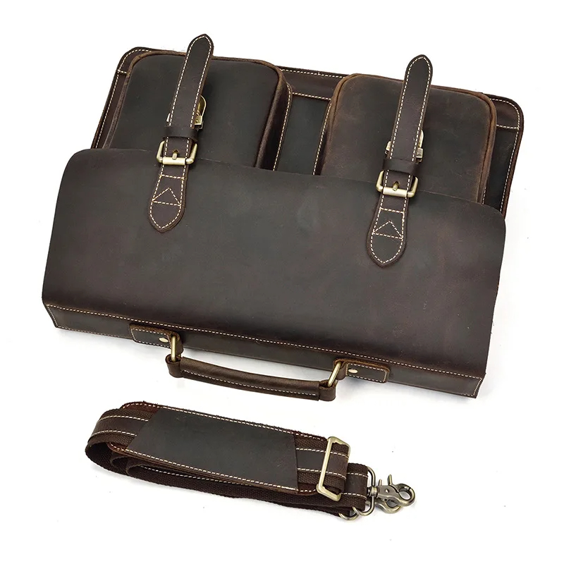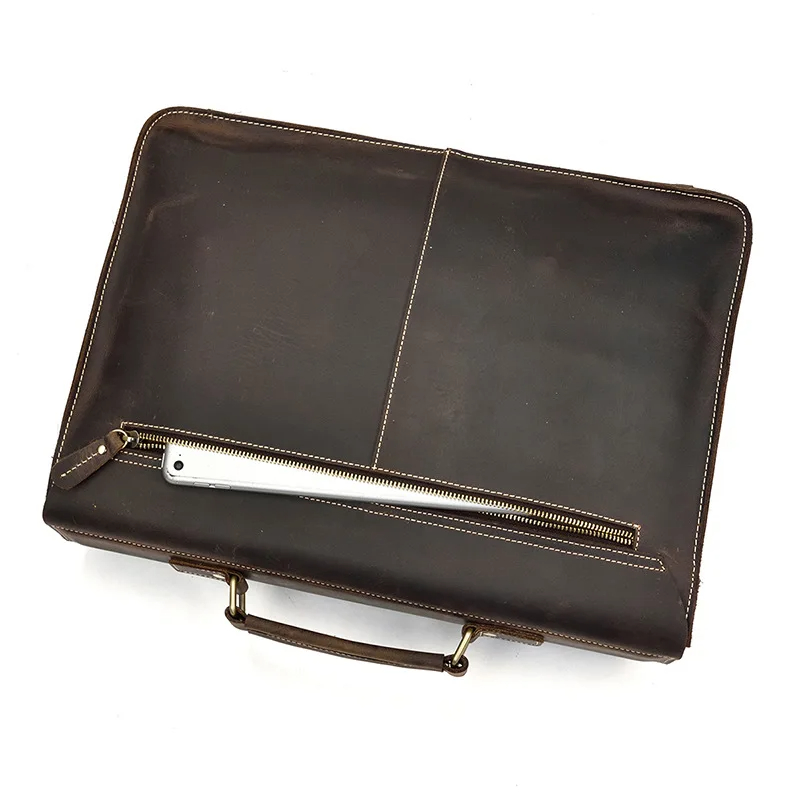 Copy| Product Name | Fashion Retro large capacity leather mens briefcase top layer leather laptop bag crazy horse skin 15 inch computer Messenger bag |
