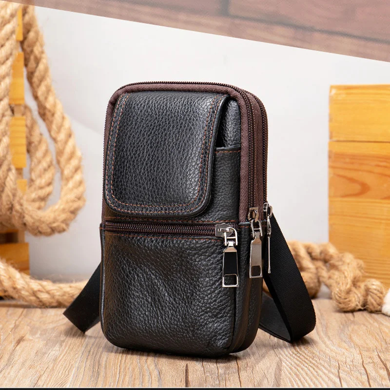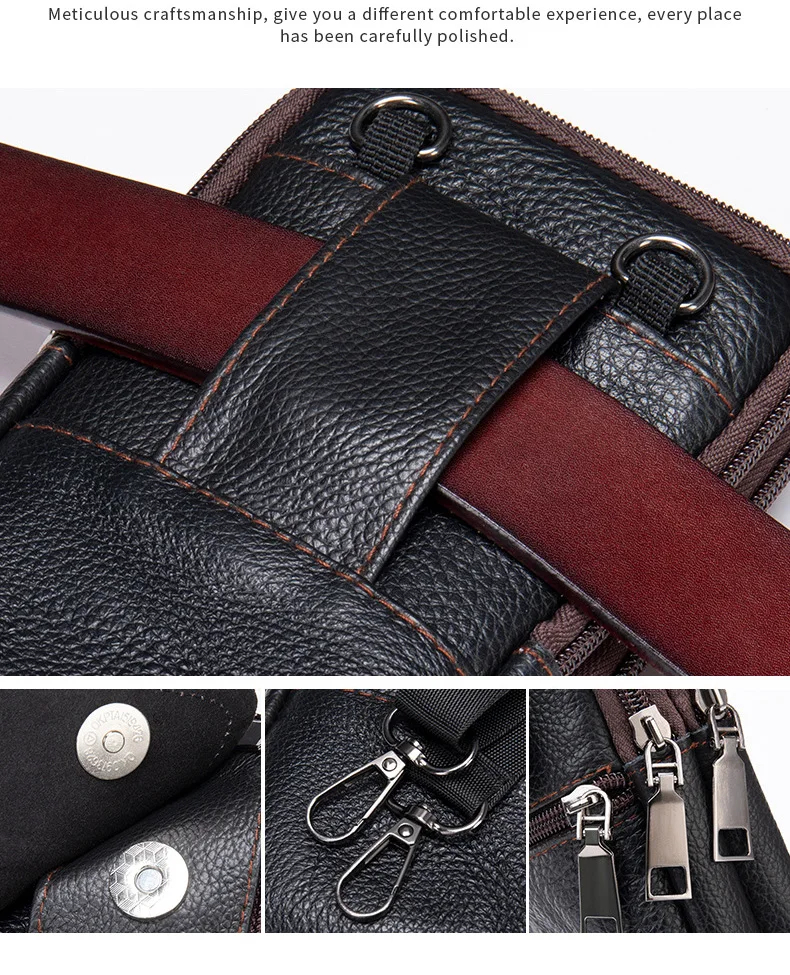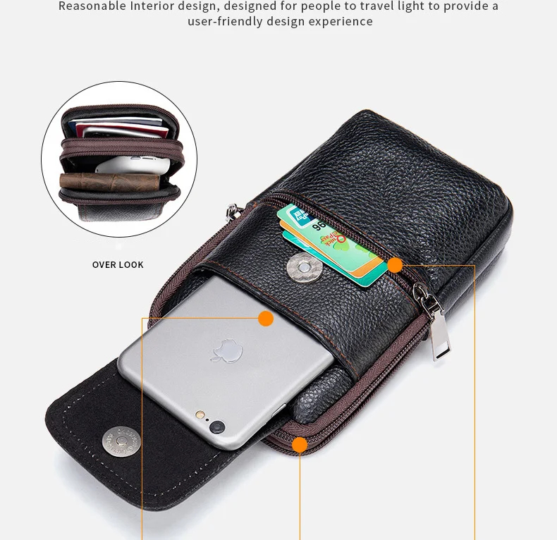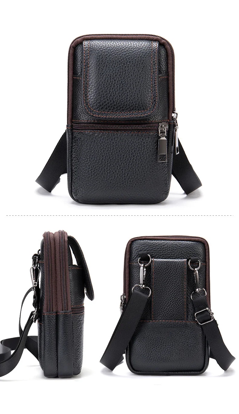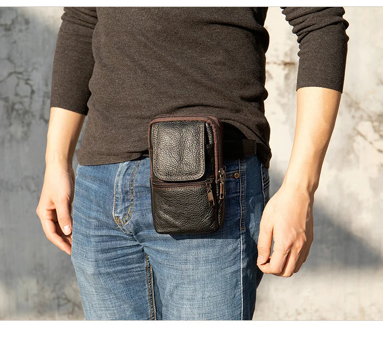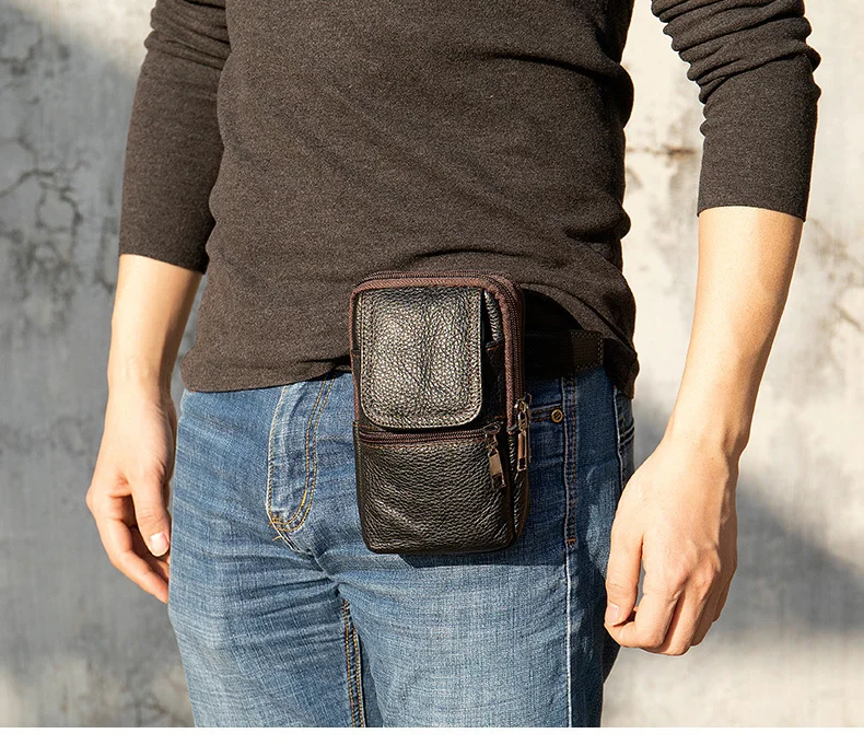 Copy| Product Name | Genuine Leather Men's Waist Bag Phone Pouch Wear On Belt Shoulder Bag For Moible Phone Outdoor Male Waist Pack Belt Pouches |