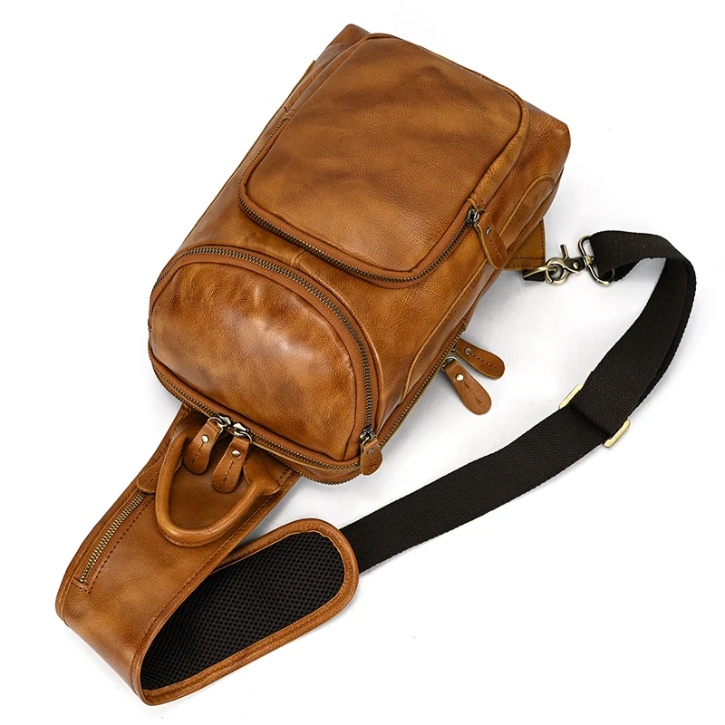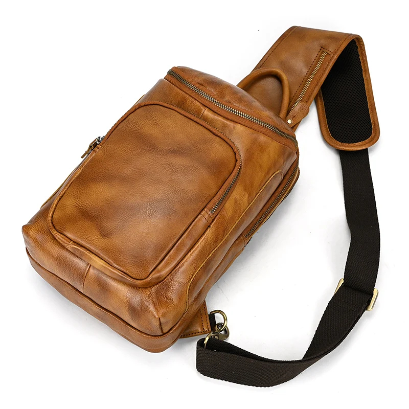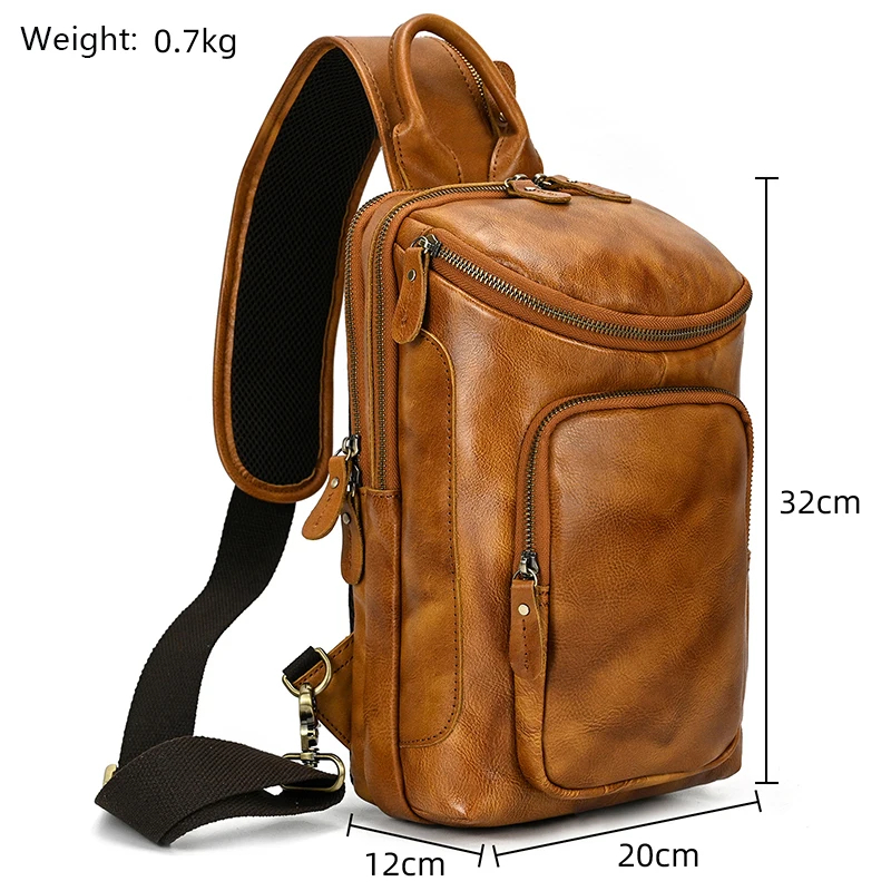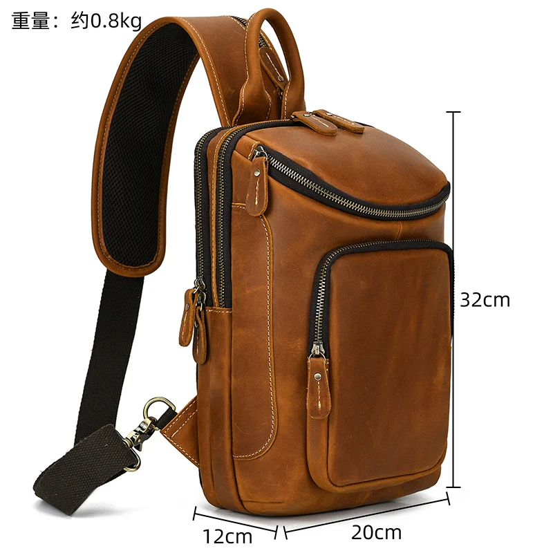 Copy| Product Name | Natural Cowskin Leather Chest Pack Male 100% Leather Shoulder Bag Leather Sling Bag Crossbody Backpack Bag For Mens Large Size |